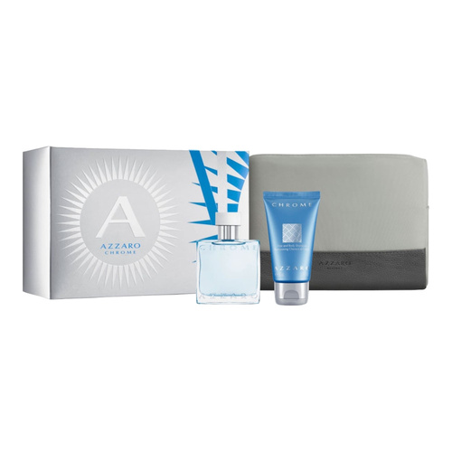 Zestaw upominkowy dla mężczyzn ceniących sobie orzeźwiające zapachy, w który znajdują się woda toaletowa Azzaro Chrome o pojemności 30 ml, żel pod prysznic (pojemność 50 ml) oraz praktyczna męska kosmetyczka. Woda toaletowa Azzaro Chrome powstała z inspiracji żywiołem wody i widokiem lazurowego nieba rozciągającego się nad powierzchnią morza.